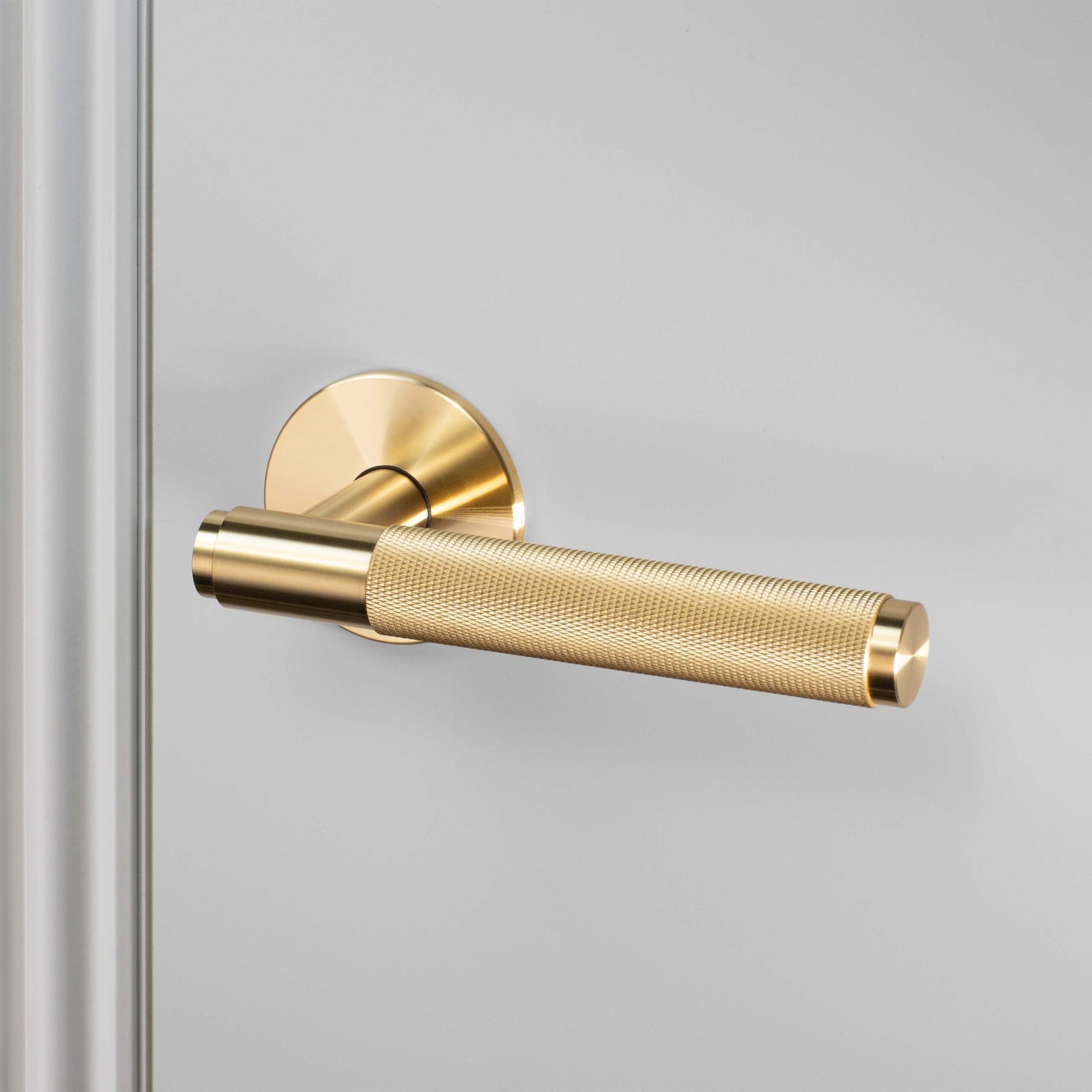 A 38mm sprung door handle made from solid brass. This door handle features our signature, diamond-cut, cross-knurl pattern and is refined by hand.