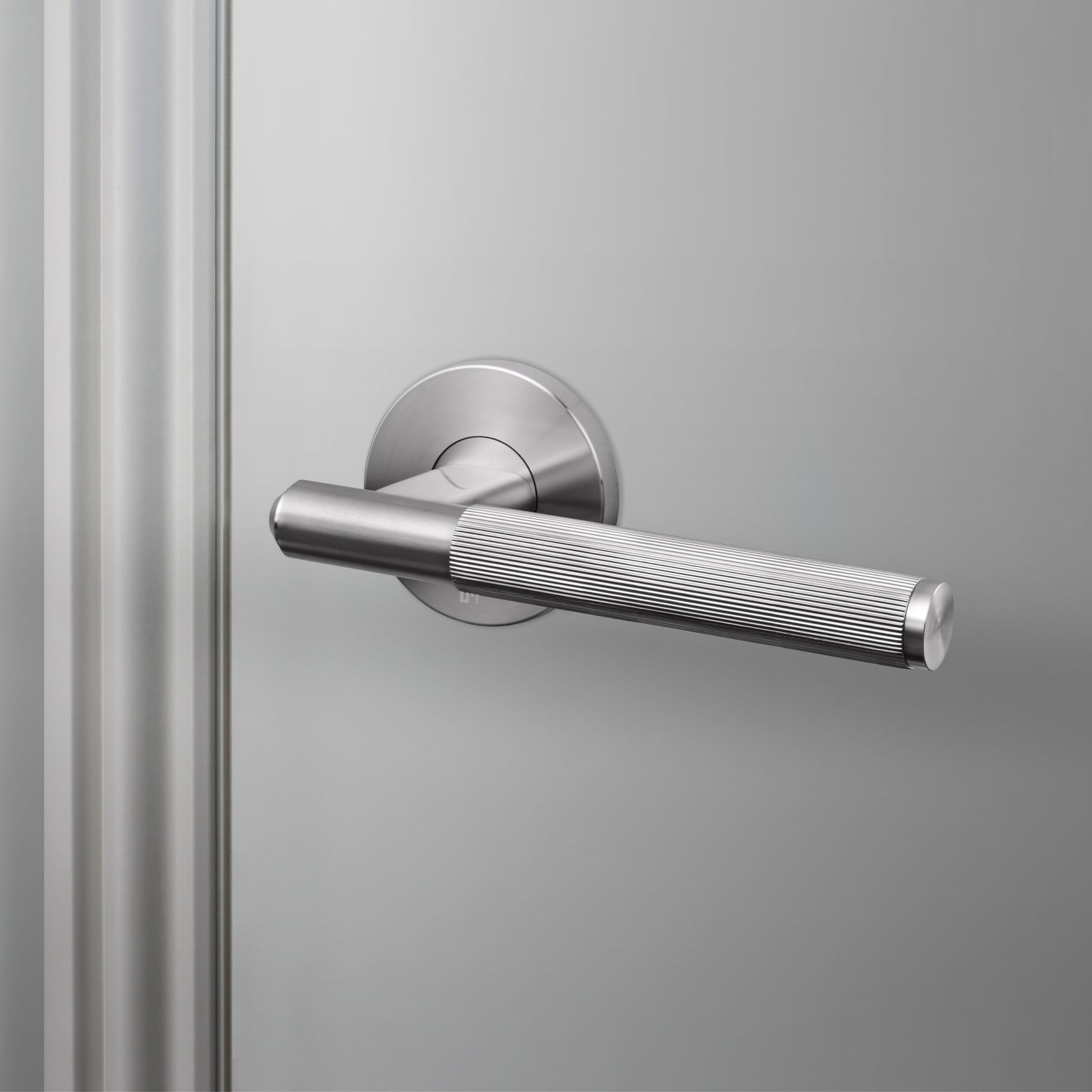 A pair of sprung door handles made from solid metal and featuring our elegant linear-knurl detailing. torx screws and laser etched Buster + Punch insignia. Works great on internal doors and can be combined with our matching door accessories.
