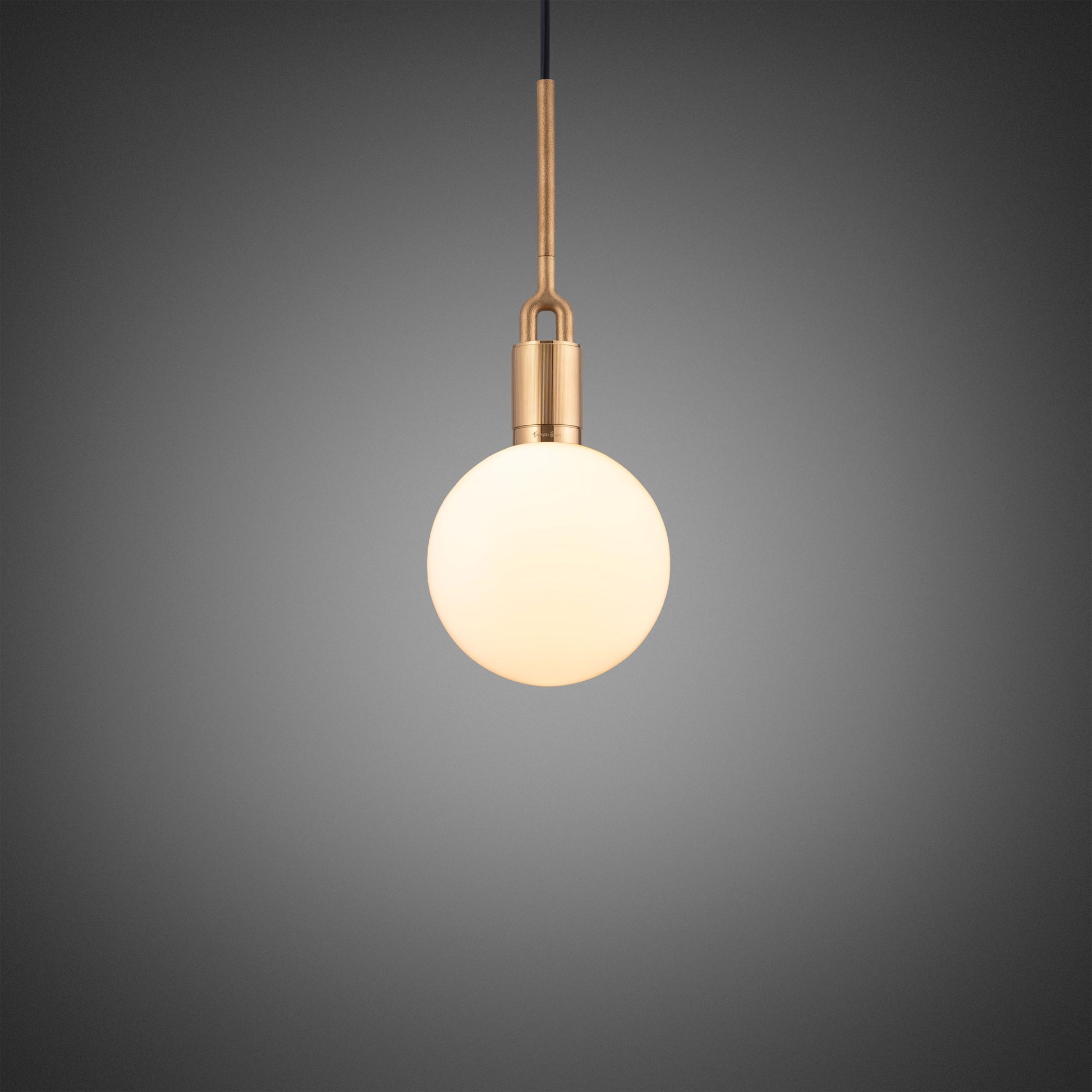 A light pendant. combining machined and cast solid metal. all refined by hand. It features our cast forked detailing and signature diamond-cut linear knurling. The light comes complete with a hand blown opal glass globe and Forked-specific dimmable Buster Bulb. casting a functional ambient light in this configuration.
