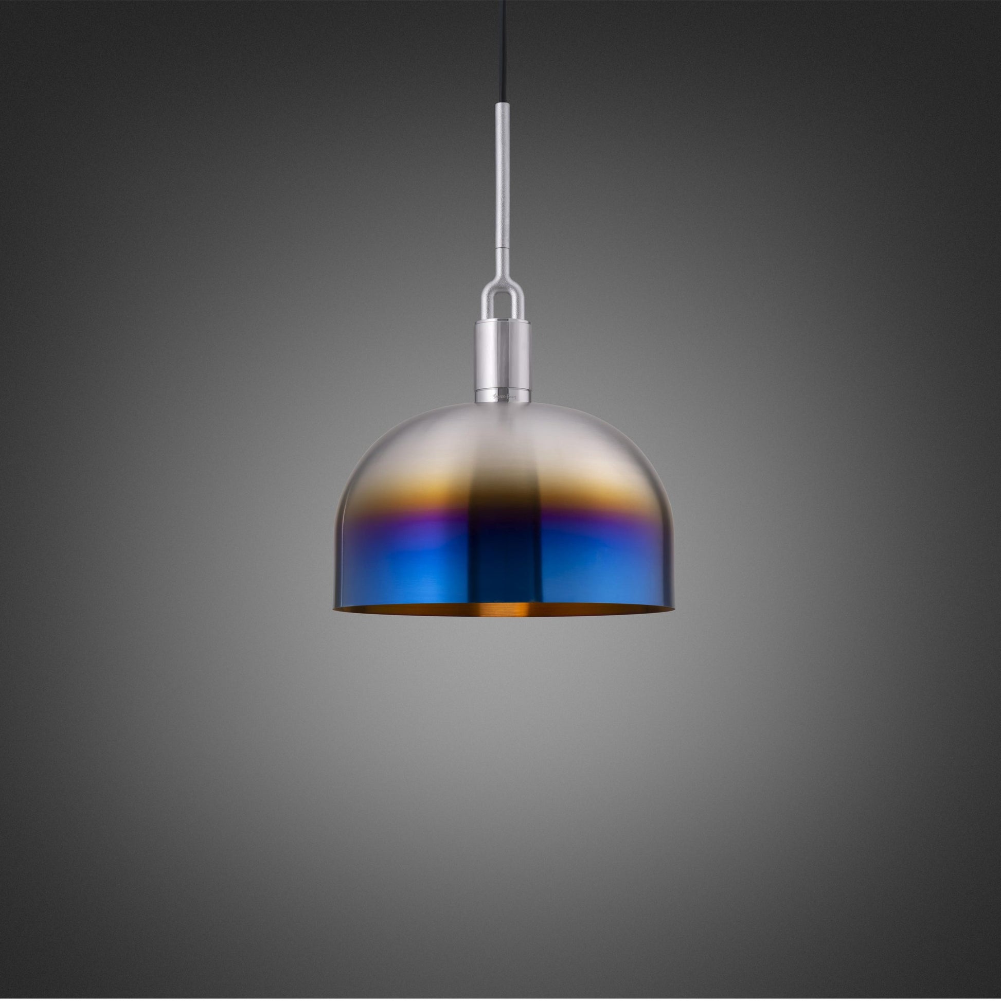 A light pendant and shade. combining machined. hand-spun and cast solid metal. all refined by hand. It features our cast forked detailing and signature diamond-cut linear knurling. The light comes complete with a Forked-specific dimmable Buster Bulb. casting a soft ambient light.