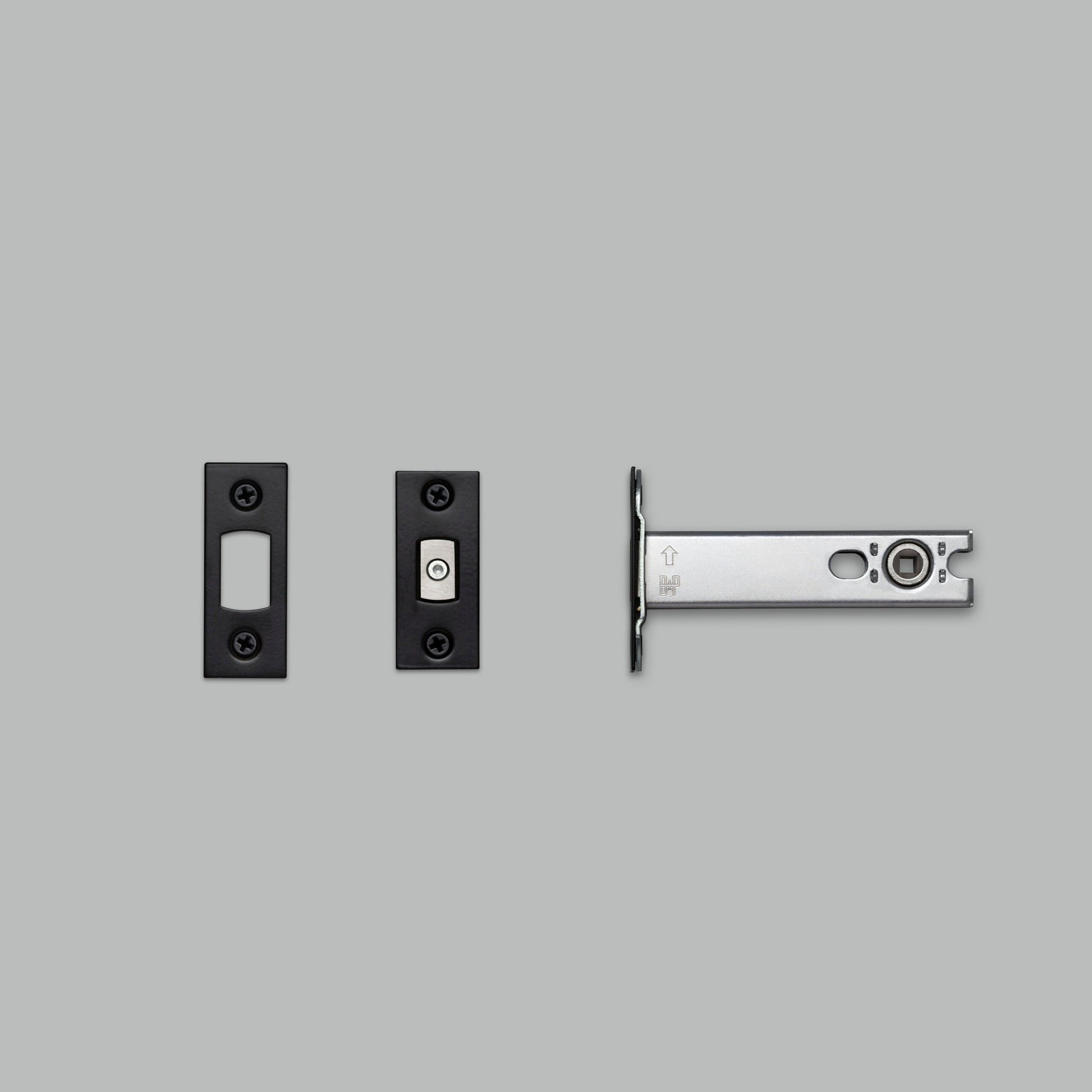 Rohrförmige Riegelschlösser, die für die Verwendung mit unseren Knaufschlössern konzipiert sind. Frontplatte und Schließblech aus bearbeitetem Vollmetall mit handgebürsteter Oberfläche.