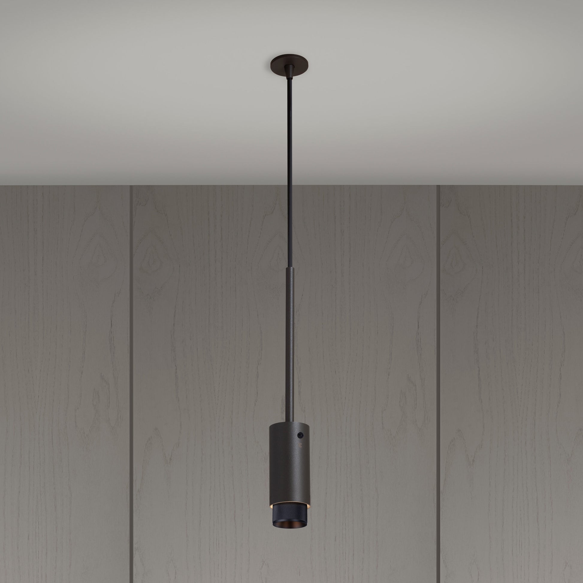 Ein Pendelstrahler aus graphitpulverbeschichtetem Metall mit massiven Gun-Metal-Details.