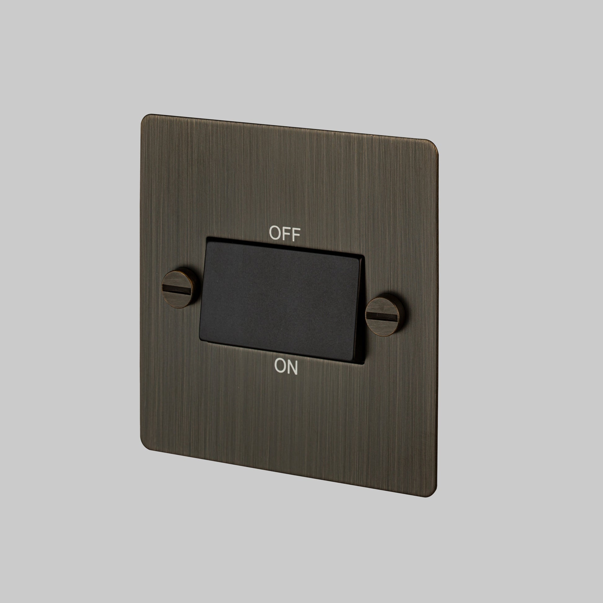 Ein dreipoliger 10-A-Lüftertrennschalter in Rauchbronze. Der Schalter trägt unsere Signatur. massive geräucherte Bronze. Münzschrauben.