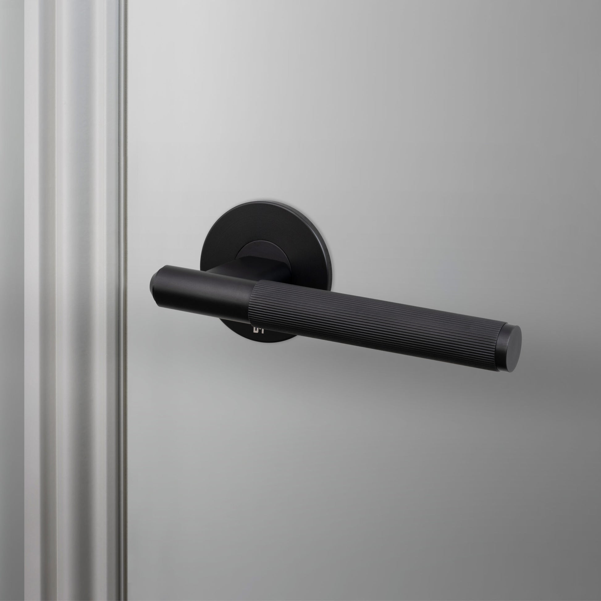 Ein einzelner fester Türgriff aus massivem Metall mit unseren eleganten linearen Rändeldetails, Torx-Schrauben und lasergeätzten Buster + Punch-Insignien. Funktioniert hervorragend für alle Innentüren und kann mit unserem passenden Türzubehör kombiniert werden.