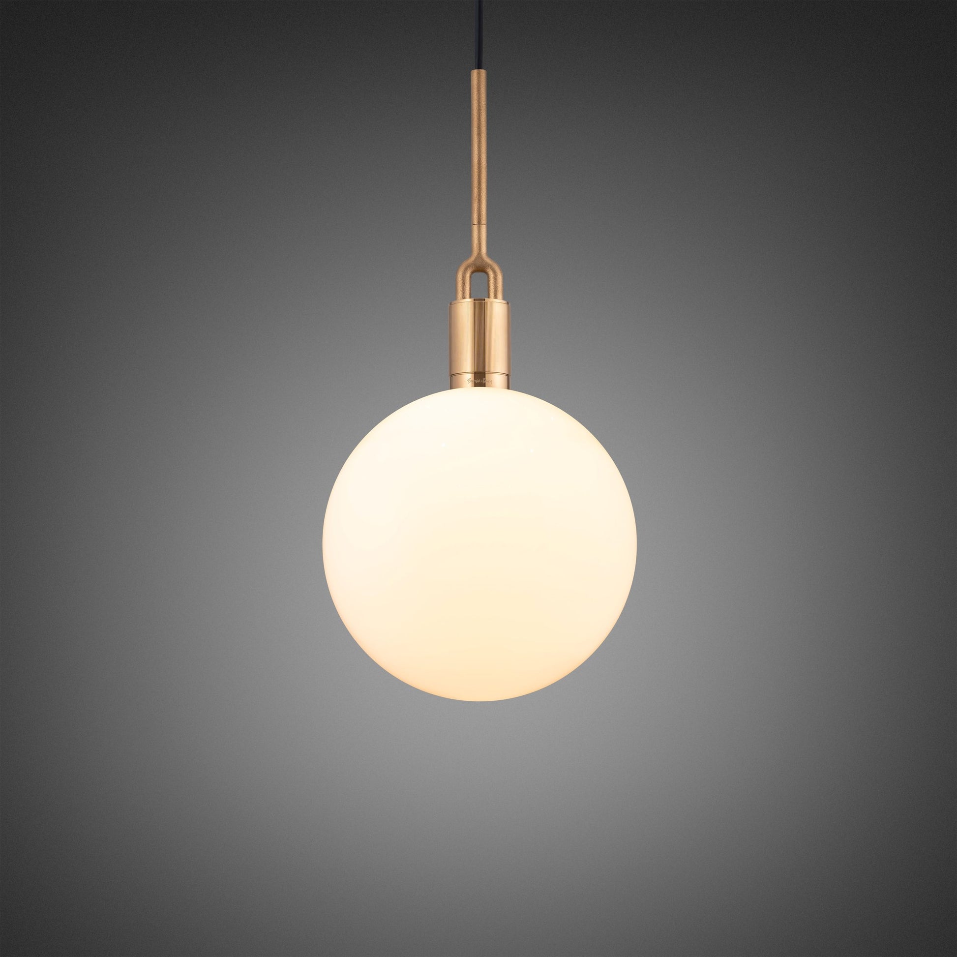 Ein leichter Anhänger. Kombination aus bearbeitetem und gegossenem Vollmetall. alles von Hand verfeinert. Es verfügt über unsere gegossenen Gabeldetails und die charakteristische lineare Rändelung im Diamantschliff. Die Leuchte wird komplett mit einer mundgeblasenen Opalglaskugel und einer Forked-spezifischen dimmbaren Buster-Glühbirne geliefert. In dieser Konfiguration entsteht ein funktionales Umgebungslicht.