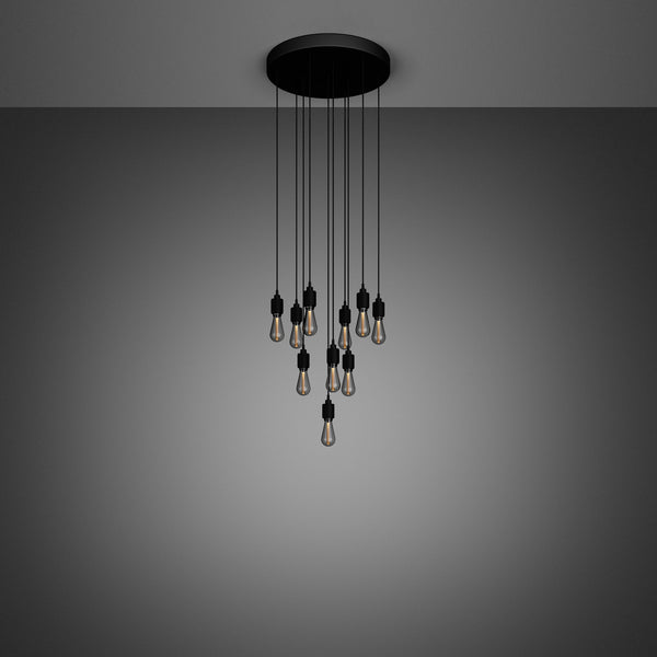 Ein maßgeschneiderter CASCADE-Kronleuchter mit 19 oder 31 Leuchtenanhängern aus massivem Metall und unserem Kreuzrändelmuster. Dieser Kronleuchter verfügt über HEAVY METAL-Leuchten und wird von freiliegenden LED-BUSTER-Glühbirnen angetrieben, um ein warmes und stimmungsvolles Licht zu erzeugen. Maßgeschneidert, um perfekt in Ihren Raum zu passen.
