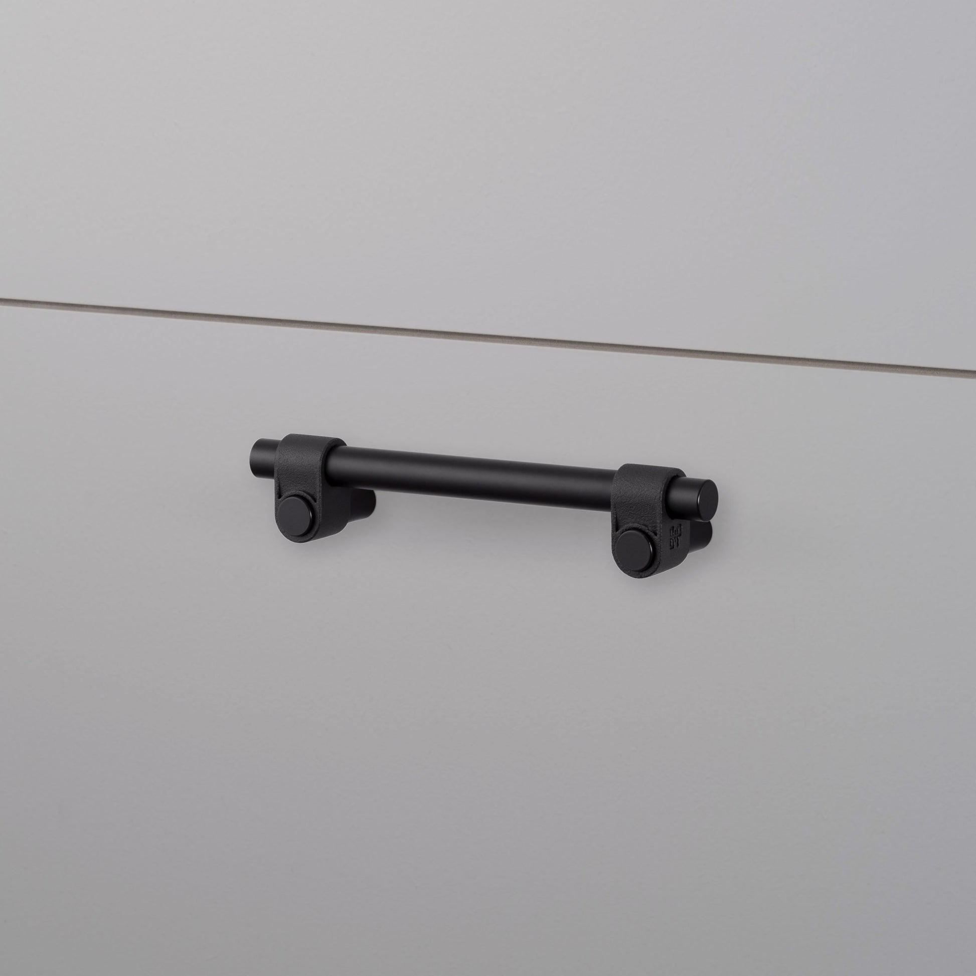 Eine Zugstange aus massivem Metall mit langlebiger, schweißerschwarzer EPL-Beschichtung, die von Hand veredelt wurde. Diese Zugstange verfügt über unseren charakteristischen Knöchel aus grobem Guss, eine handpolierte Stange aus massivem Metall und ein eingeprägtes B+P-Emblem auf dem Knöchel.