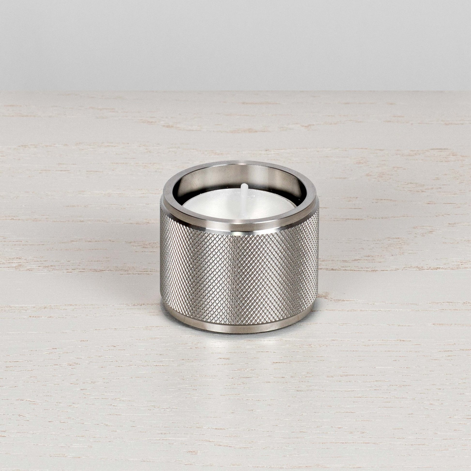 Die bearbeitete Innenseite des Halters besteht aus einer massiven Edelstahlstange und sorgt für atemberaubende Reflexionen des Kerzenlichts. Funktioniert hervorragend mit jedem Standard-Teelicht (mit einem maximalen Durchmesser von 42 mm).